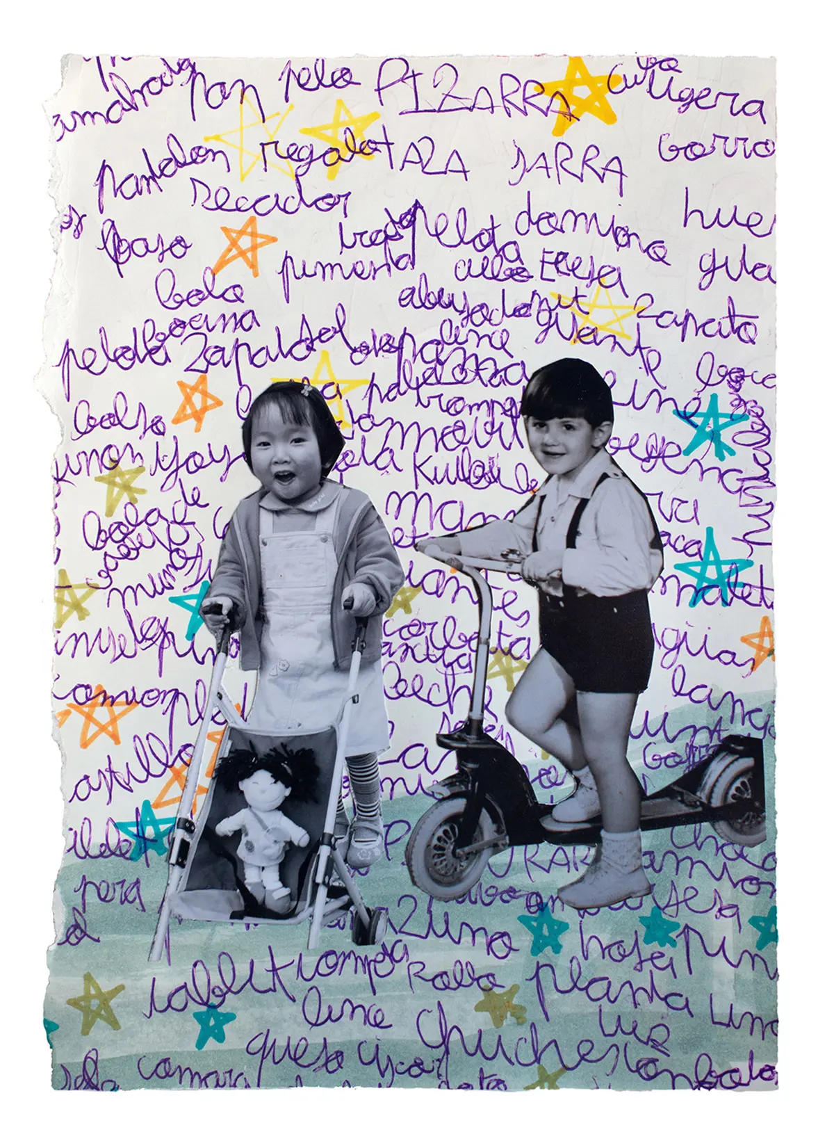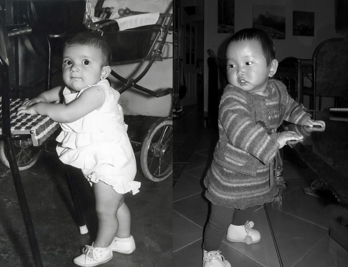 Por tanto, a la vez que mi hija y nuestra relación evolucionan, amplío el contexto de mi investigación al álbum familiar. Y encuentro fotografías que tienen una conexión, que dialogan entre ellas y generan una energía llena de sensaciones. Además ella entiende y acepta este álbum reinventado, implicándose en la búsqueda y en la intervención de fotografías. Este nuevo álbum ,de lo que yo llamo parecidos vinculantes, empieza a tender un puente al sentimiento de arraigo y de continuidad, abriéndonos un camino por delante.
